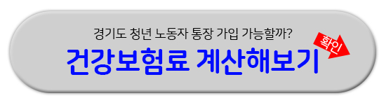 경기도 청년 노동자 통장은 위 네 가지 항목을 모두 충족하는 경우에만 신청 할 수 있습니다. 특히 신청을 위해서는 소득 기준을 확인해야 하는데 정확한 기준을 알 수 없다면 건강보험료 계산을 미리 해보시길 바랍니다.