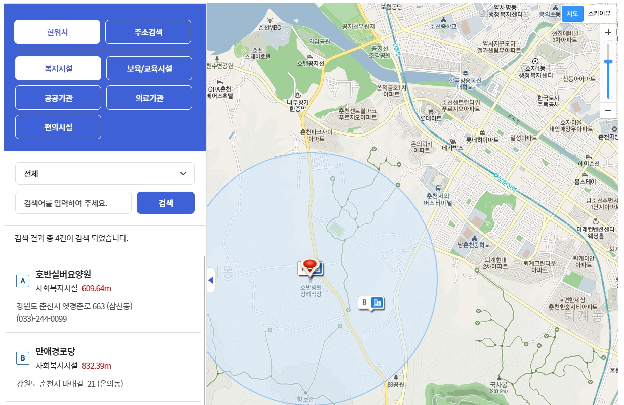 내 주변 복지시설을 한 눈에!