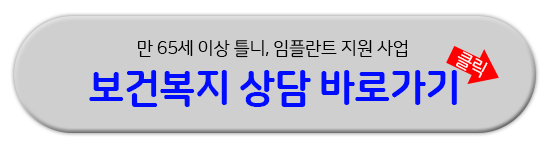 노인 틀니, 임플란트 지원 사업 문의는 보건복지부 129 또는 건강보험심사평가원 1644-2000에서도 상담이 가능합니다. 치아는 우리 삶에 매우 중요한 역할을 합니다. 아픈 상태로 방치하게 되면 삶의 질이 현저히 떨어지게 되죠. 여전히 이런 사업이 있다는 것도 모른 채 치아 상태를 방치하고 계신 분들이 많을 텐데 주변에 도움이 필요한 어르신이 있다면 관심을 가지고 살펴보고 안내도 해주시면 좋겠습니다.