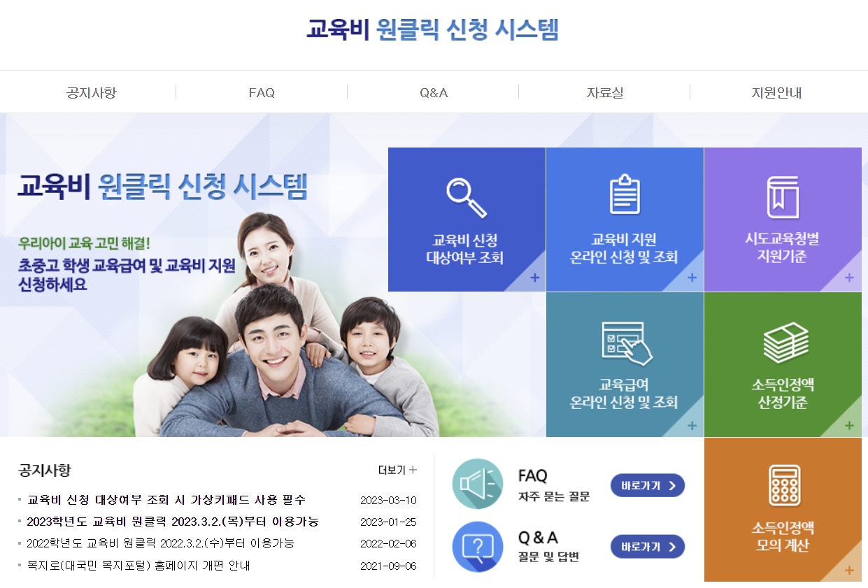 | 인터넷 신청 | 교육비 원클릭 시스템 또는 복지로 |
