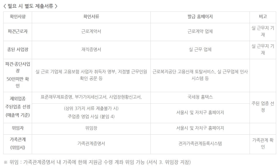 또한 신청자의 상황에 따라 추가 서류가 필요할 수 있습니다. 신청 대상자 본인의 상황에 맞게 추가로 필요한 서류가 있는지 반드시 확인 후 빠짐없이 준비하셔서 제출하셔야겠습니다.