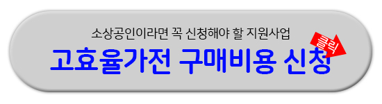 소상공인 고효율 지원사업은 소상공인을 대상으로 에너지 효율개선 및 전기요금 부담 완화를 위해 고효율 기기 구입 시 가전 구매비용의 일정비율을 지원해 주는 지원 사업입니다. 사업예산이 총 750억이며, 예산 소진 시 사업이 조기 종료 될 수 있기 때문에 지원대상이 된다면 서둘러 신청하는 것이 좋습니다.