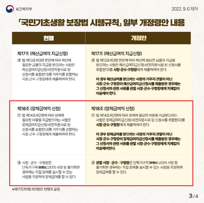 장제급여 지원대상 달라진 신청방법