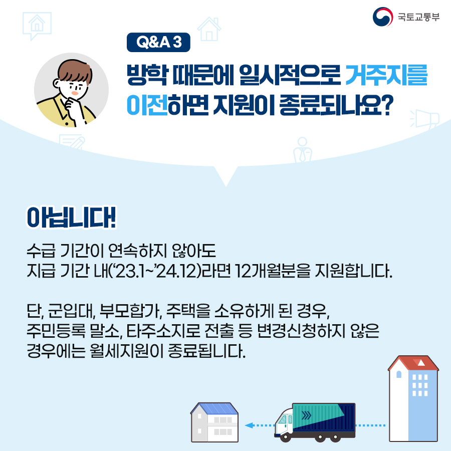 질문 몇 가지를 함께 살펴보도록 하죠. 저도 궁금했던 부분인데요. 월세 지원에 관리비도 지원이 될까? 안타깝게도 관리비는 지원 대상이 아닙니다. 실제 납부하는 임대료를 월 최대 20만 원까지 최대 12개월에 걸쳐 분할 지급하는데 임차 보증금, 관리비 등은 제외 대상이라고 합니다.