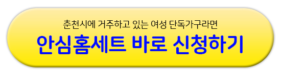 춘천시에 거주하고 있는 여성 1인가구라면 안심홈세트를 신청할 수 있습니다. 안심홈세트가 무엇이냐고요? 춘천시에서 지원하는 안심홈세트가 무엇이고 어떻게 누가 신청할 수 있는지 차근차근 안내해 드리겠습니다.