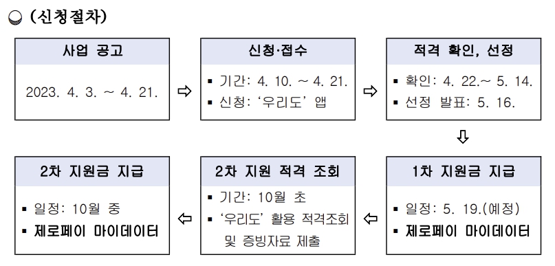 해당 지원 사업은 상시 신청이 아니기 때문에 공고문에 나온 신청 기간에 맞추어 신청을 해야합니다. 2023년 신청기간은 4월 10일부터 4월 21일까지 12일간이니 신청을 원하는 분은 이 기간에 꼭 신청 접수하셔야합니다.