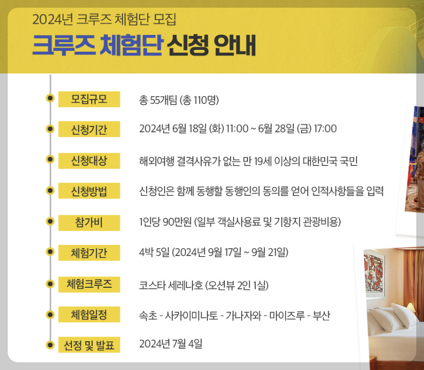 2. 2024 크루즈 체험단 신청자격 및 일정