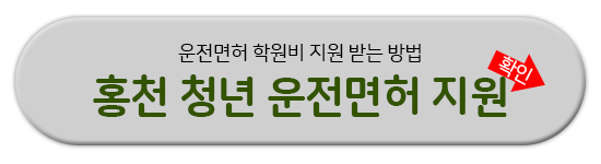 운전면허 학원비 지원은 홍천군에 3년 이상 거주하고 있는 만 20세 이하 청년이라면 지원받을 수 있습니다.